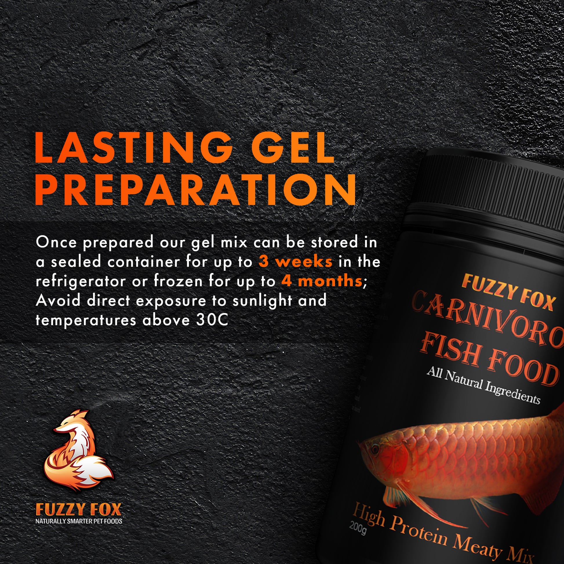 Take a measuring cup and pour in the desired quantity of powder, pour the powder in a mixing container. Add 2x boiling water into the measuring cup and pour the boiling water into the mixing container. Stir the powder and water with a fork until completely mixed. Place in the fridge to let the gel set, times will vary based on quantities made and mix is ready once firm.