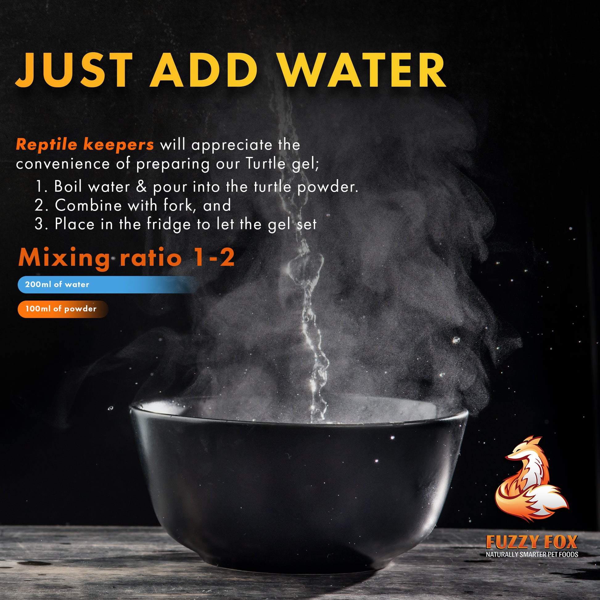 Take a measuring cup and pour in the desired quantity of powder, pour the powder in a mixing container. Add 2x boiling water into the measuring cup and pour the boiling water into the mixing container. Stir the powder and water with a fork until completely mixed. Place in the fridge to let the gel set, times will vary based on quantities made and mix is ready once firm.